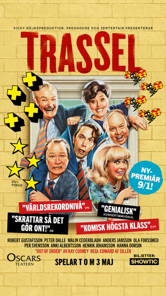 Trassel gör stor succé på Oscarsteatern i Stockholm. Den 9 januari är det nypremiär då vi ser Malin Cederbladh ansluta till den stjärnspäckade ensemblen. Spelar fram till 3 maj, säljer snabbt! Boka idag!